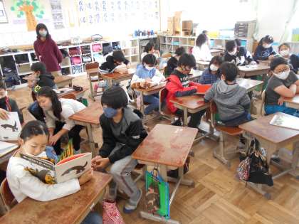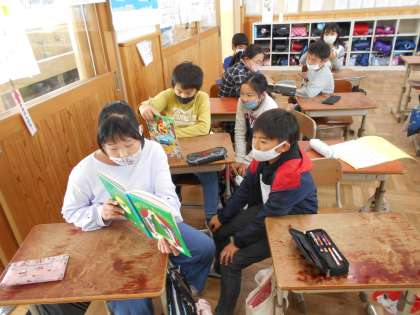 コスモス読書週間4日目は,昼学習の時間にペア読書を行いました。自分が選んだ本を相手に読み聞かせをし,交流しました。お互いに身を乗り出しながら聞くペアもたくさんあり,とても良い時間が過ごせていました。