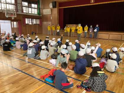 まずは講堂で,森林インストラクターの皆様と顔合せ,代表の方から諸注意を聞いて,いざ,出発進行!!