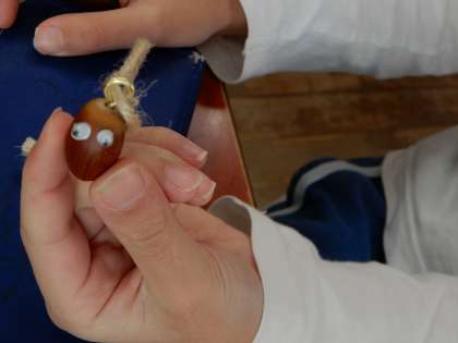 5時間目はどんぐりのキーホルダーと落ち葉のこすりだしをしました。1つとして同じものがない,自然ならではの作品をつくることができました。