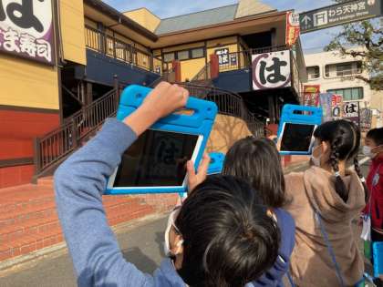 今回は,西大路通沿いのお店や神社・公共施設をiPadで撮影したり,マークしたりしながらまわりました。道中,いろいろな発見があり,楽しくまわることができました!!