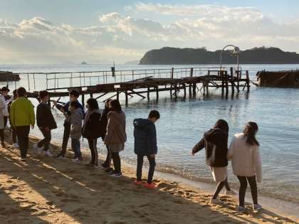 朝食後,少し時間あったので,浜辺を散歩しました☆綺麗な貝殻を見つけたり,水切りをしたりと思い思いに過ごしました!