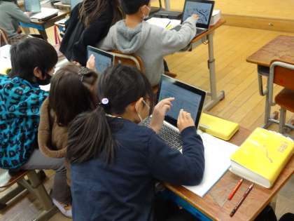 今日は「今と比べて,昔の様子を調べよう」というめあてで学習しました。GIGA端末を活用して,金閣小学校の周りの,昔の様子と今の様子を比べました。