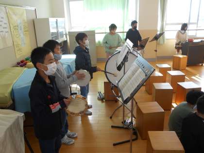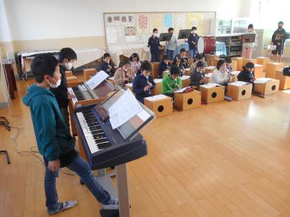 5年生は音楽の学習で合奏に挑戦しました。曲想の変化に着目しながらの演奏です。短い練習時間でそれぞれのパートが重なり合う素敵な合奏が完成しました。