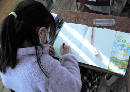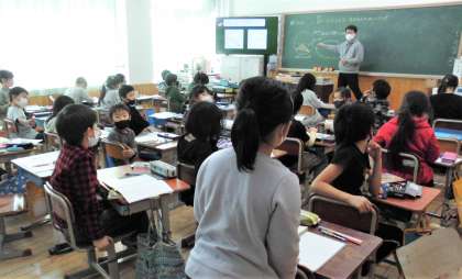 「円を使って作図された三角形はどんな三角形か」を考えています。「円の半径はすべて等しい」ということに着目することで,円を使ってかかれた三角形はすべて二等辺三角形になるということに気が付いていました。