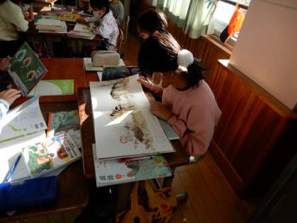 国語科で昔話や民話の紹介するために,それぞれが本を選び,起承転結を意識して,紹介文を書きました。どこの国の話かも地図帳を活用して調べました。