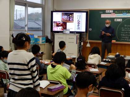 社会科で市のうつりかわりについて学習を進めています。校区の昔と今の様子を比べた後,もっと詳しく知りたいということで,ゲストティーチャーをお招きし,校区の周辺の様子について教えていただきました。