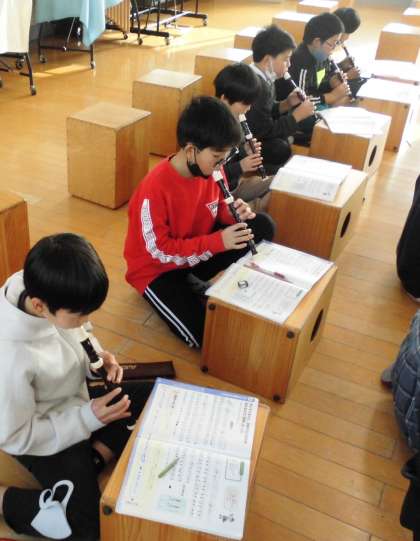 スラーがついているところのタンギングや強弱に気を付けながら「威風堂々」の主な旋律をリコーダーで演奏していました。音楽室からはゆったりとしたきれいな音色が響いていました☆