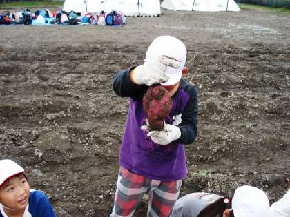 がんばって掘り続けたら,とっても大きな大きなお芋がたくさん収穫できました。