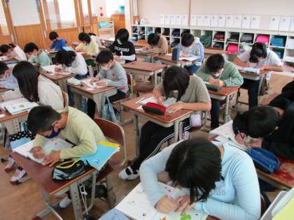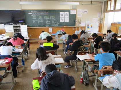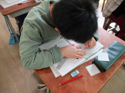 今週から本格的に教科の学習を始めています。算数の学習では,2つに折ってぴったりと重なる形や,回してぴったり重なる形について,写し取り紙を使いながら確かめました。