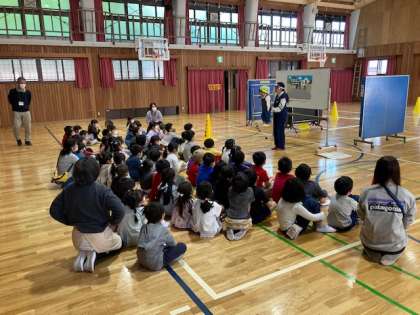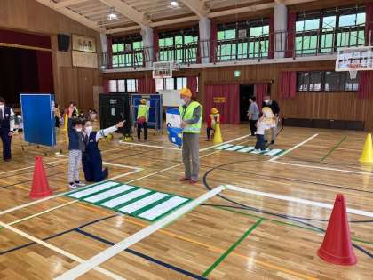 1年生は「交通安全教室」に参加しました。横断歩道を安全にわたるには・・・「待つ場所」「動いている車やバイク・自転車の確認」そして「信号の色」など,みんなで話し合い,確認し,実際に体験しました。
