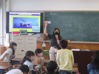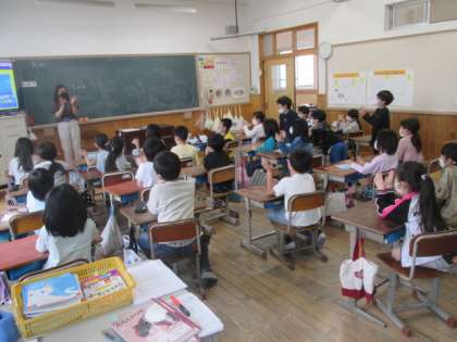 今日は,今年度初めてALTのフェイ先生が金閣小学校に来てくださいました。3年生の子どもたちにとっては,初めてのフェイ先生との学習です。フェイ先生から自己紹介をしていただいたのですが,子どもたちは興味津々でフェイ先生のお話を聞き,とても楽しい時間を過ごしていました。