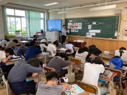 「出身地やできることを尋ね合おう。」をToday's Goolにし,【スリーヒントクイズ】などを通して,楽しみながら外国語に慣れ親しんでいました☆