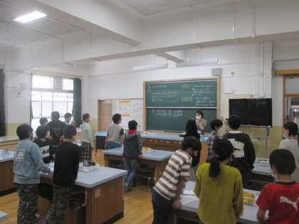 ものが燃える前の空気と,ものが燃えた後の空気には違いがあるのかを,「気体検知管」という道具を使って調べています。酸素や二酸化炭素の量を調べるための道具です。初めて使う実験器具なので,説明をよく聞いて,慎重に取り扱っています。