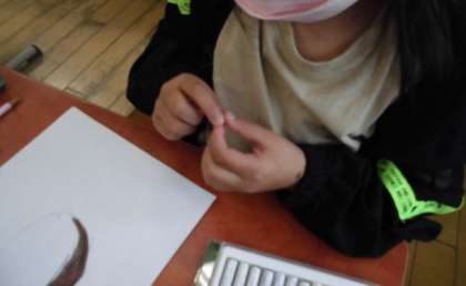 種を手にした子どもたちは,「こんなに小さいの?」「黒いところと茶色いところがある…。」「においは,あんまりしないなあ。」などとつぶやきながら一生懸命に種の観察を行っていました。