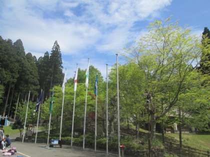 朝,出発するときに雨が降っていたのがうそのように,とてもいい天気になってきました。青空と新緑のコントラストもとてもきれいです。花脊の自然が満喫できそうな午後です。