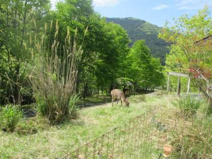 本館のすぐそばに,鹿が一匹やってきました。山の家の敷地で,鹿の足跡や糞を見かけることはよくありますが,本館のすぐそばで見かけるのは初めてです。慣れているのか,子どもたちが寄って行っても逃げません。ちょっとしたサプライズでした。