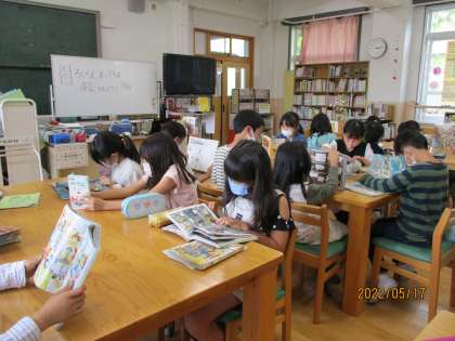 みんなで読み聞かせを聞き,そのお話について考えた後,朝読書の時間にもしっかり読むことができる本を今週も2冊借りました。
