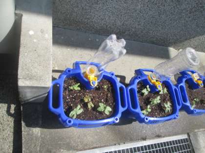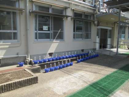 先週,生活科の学習でまいた,あさがおの種から,もう芽が出てきました。かわいい双葉がいくつも顔をのぞかせています。これから暑くなるにつれて,どんどん大きくなっていきます。水やりを忘れないように,しっかりお世話をしましょうね。何色の花が咲くか,楽しみですね。