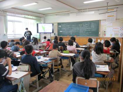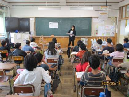 朝読書の時間には,「水とたたかった武将・武田信玄」の本の読み聞かせを聞きました。