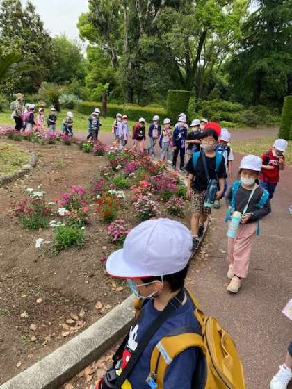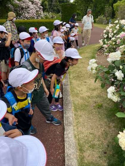京都府立植物園に到着し,正門近くにあるバラ園を鑑賞しています。