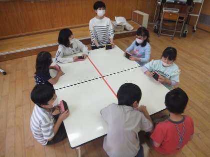 5時間目の生活単元の学習で,いろ組合同で卓球バレーを