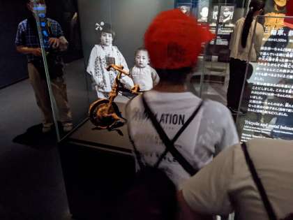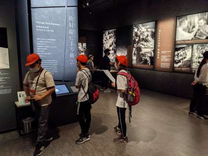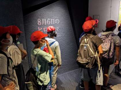資料館では,展示物や写真・映像などから原子爆弾の威力や恐ろしさが伝わってきました。メモをとりながら,まわっています。