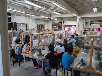 陶工から指導を受け,手びねりの作品を作ります☆彡