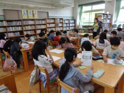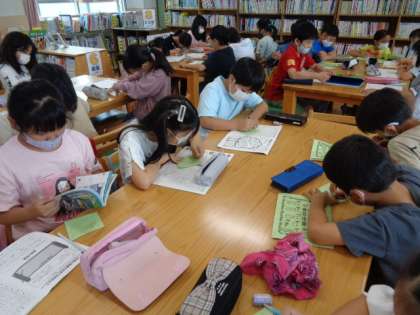今週は,「あじさい読書週間」です。朝から図書館を使って学習をしている学級もあります。読書ノートに読んだ本を記録したり,「読書の木」に,感想を書いた葉を貼ったりして,読書活動を充実させています。