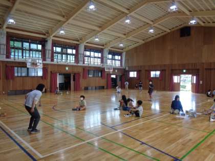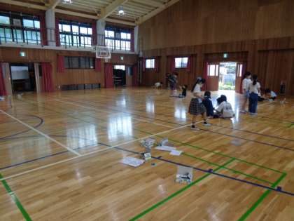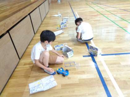 理科で学習した,電池のはたらきの知識を生かして,講堂で,電池で動く車を走らせる学習をしました。子どもたちはとても楽しそうに,車の走る様子を確かめていました。