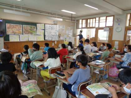 修学旅行から帰ってきて,6年生の社会科は歴史学習を始めました。最初の単元は,「縄文のむらから古墳のくにへ」です。教科書の挿絵資料や,動画をもとにしながら,米作りが始まったことによって人間の暮らしはどのように変わったのかを考えていきます。