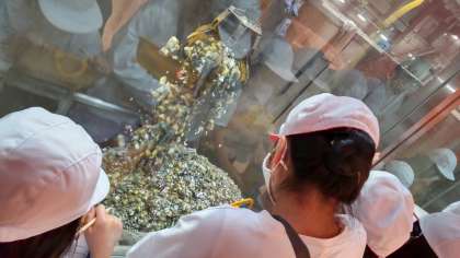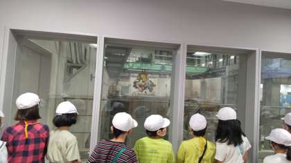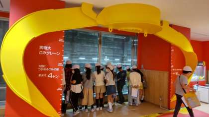 ごみ収集車で集めたごみや家庭から持ち込まれたごみは,ごみピットに貯められ,クレーンで焼却施設へと運ばれます!その様子を実際に見学することができました。クレーンの大きさに驚きました!!