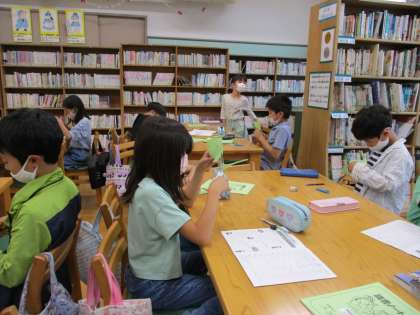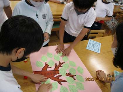 各クラスでおすすめの本を葉っぱに書いた読書の木を作成しています。友だちのお気に入りの本のおすすめポイントを参考にして本を借りてみましょう。読書の世界が広がりますね!