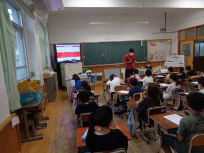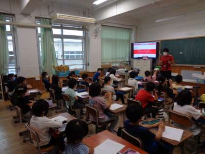 体育専科の稲葉先生から,水泳学習を始めるにあたっての注意点を教えていただきました。水泳学習は,体育の学習の中でも特に安全に気を付けて学習をすすめていかなければいけません。先生のおっしゃることをしっかりと守って,安全に学習できるようにしましょうね。