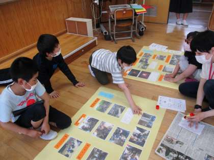 5年生は,5月に花背山の家に行ってきました。アスレチックやネイチャービンゴ,キャンプファイヤー,野外炊事など,楽しい思い出がたくさんできました。友達と協力したこと,みんなで楽しく過ごしたこと,いろいろなことを思い出しながら,新聞にまとめました。