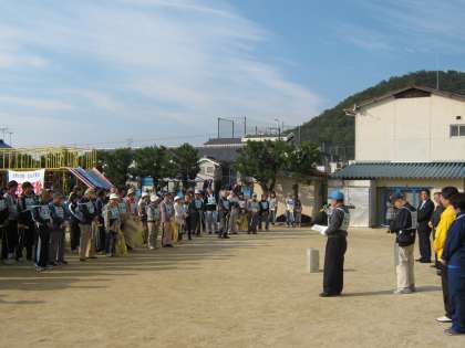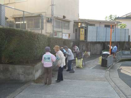 13日の日曜日,秋晴れの下,金閣学区の環境美化キャンペーンが行われました。春に続いて今年度2度目の美化活動です。今回は,地域の方々をはじめ,昨年度と同様に立命館大学のサッカー部の学生さんたちも協力してくれました。