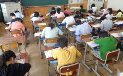 4年生は、「読み・画数・使い方・部首」など、確認しながら新出漢字の学習をしました。丁寧になぞり書きをし、字形を意識しながら何回も練習しました。