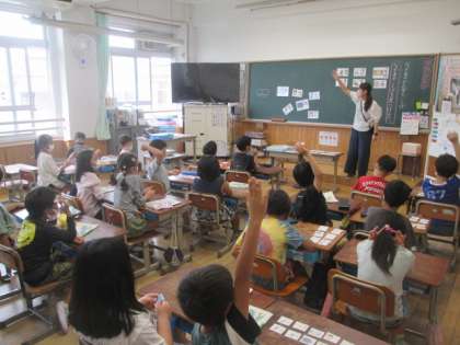 体育・算数・国語の学習を見ていただきました。国語では,仲間の言葉を見つけながら漢字について楽しく学習している様子を見ていただくことができました。