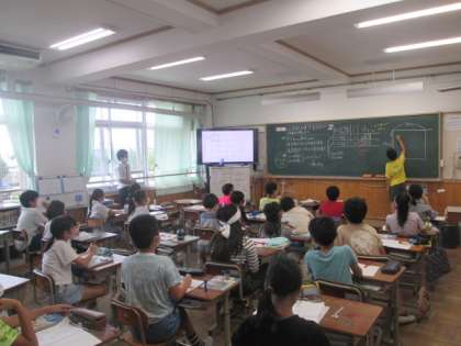 外国語・音楽・算数の学習を見ていただきました。音楽は,スクールサポーターの井上先生に教えていただきました。算数は,「整数」の単元で,公倍数について学習しました。どのグループも真剣な表情で取り組んでいました。