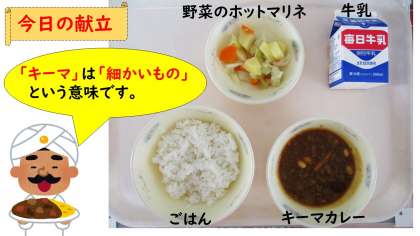 昨日の給食はキーマカレーでした。