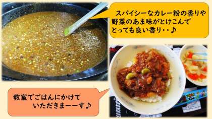 豆が苦手な子どもたちも、カレーに入れると食べやすいのか、パクパク食べてくれました!