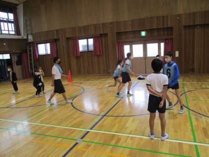 6年生が国語の学習で考えた遊びで,1年生と一緒に遊びました。どんな遊びをしようか計画を立て,今日のために話し合いや練習を繰り返してきました。1年生も大喜び。とても良い交流ができました。次回は遊びの反省をし,より良いものにしていくための話し合いを進めていきます。