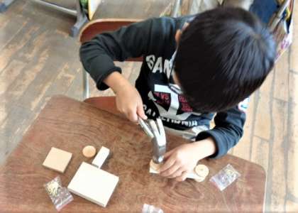 「金づちの使い方や釘の打ち方」などを知り、安全に気をつけながら釘を打つことに挑戦しました☆彡それぞれが思い思いの作品を作っていました!!