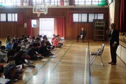 総合的な学習で、福祉についての学習をしています。今日は金閣社会福祉協議会の方からどのような活動をされているのか聞きました。みんな集中して聞きながらメモを取っています。今日の話をもとに、地域のために自分たちができることを考えていけそうですね。お世話になった地域の皆様,ありがとうございました。