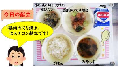先週の金曜日の献立は,「鶏肉のてり焼き」でした!