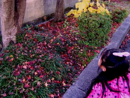 校門付近の紅葉が,今朝の雨でずいぶん散ってしまいました。