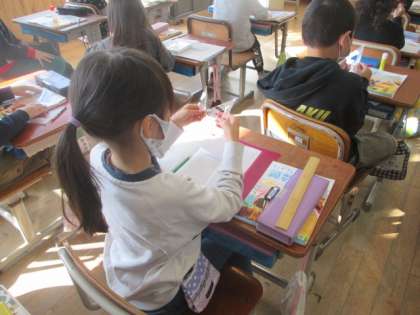 三角定規を使って,身の回りにある直角を調べる学習をしました。ノートの罫線や机の角など,子どもたちは三角定規の角を当てながら,いろんなところに直角があることを見つけていました。