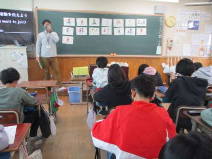 今日の外国語の授業は,衣笠中学校の英語の先生にお越しいただき,中学校生活に関する内容を英語で知る学習を行いました。日課や部活動など,6年生が気になる内容をたくさん教えていただくことができました。