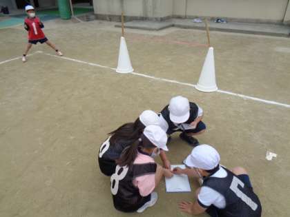 ルールやゲームの進め方をみんなで理解し、いろいろなチームとの対戦を楽しんでいました。前半・後半の間には、「作戦タイム」があり、ボードを使いながら、どうしたらパスをつなげるのか…点をとれるのか…守れるのか…など、話し合っていました☆
