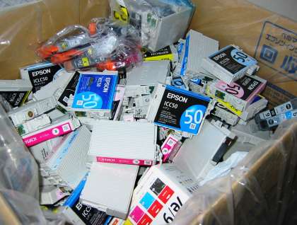 使用済みインクカートリッジやリサイクルペーパーをお持ち頂く方が