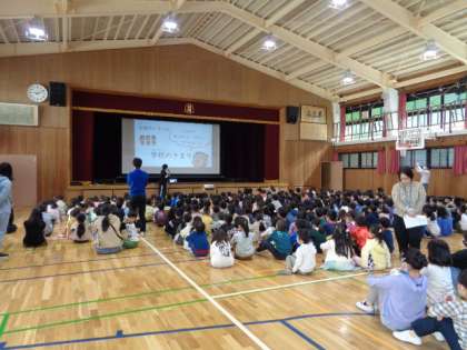 5月の朝会をしました。なんと3年ぶりの全校集会です。みんなで集まるのはいいものです。
